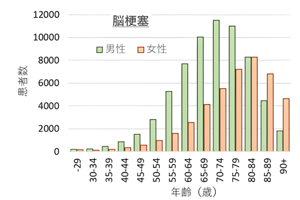 脳梗塞の発症率は年齢と共に高くなる傾向があり、60歳以上になると発症率が急に増えていき、特に70~80歳で発症する人が多いです。